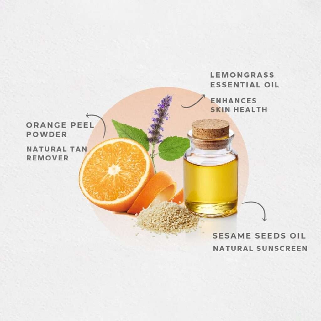 Orange Peel Powder, Glycerine, Lye, Distilled Water, Propylene Glycol, Sorbitol, Sodium Citrate,CAPB