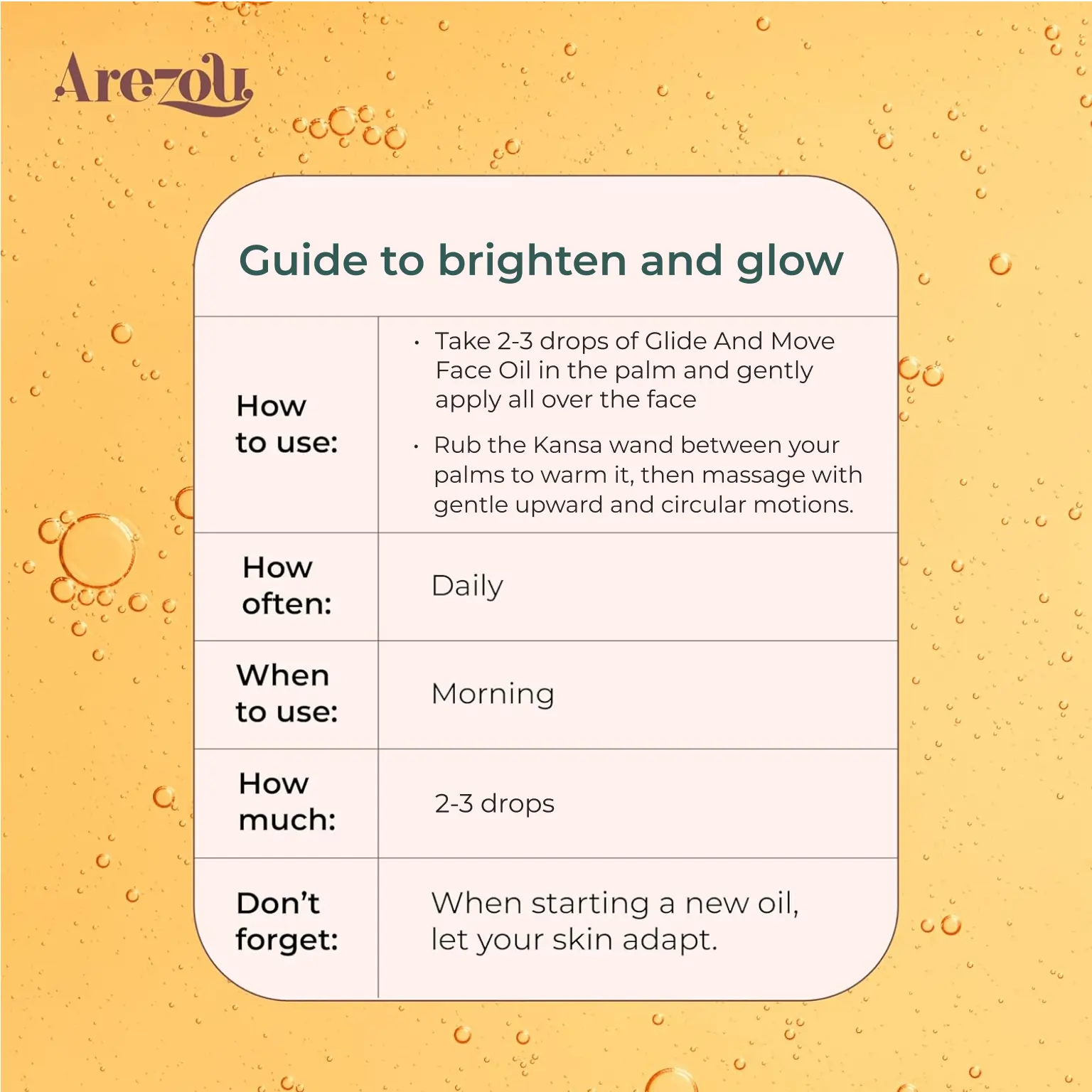 - Take 2-3 drop of Glide and Move Face oil in your palm.