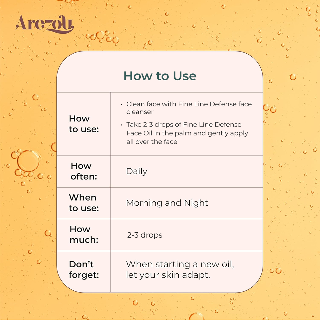 - Massage Arezou Fine Line Defense oil on face in circular motion