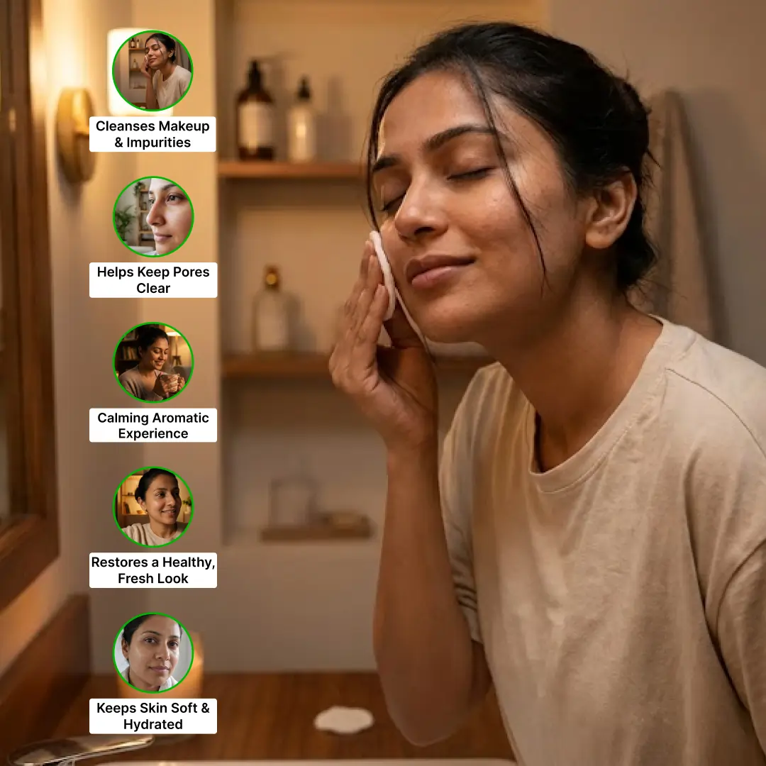 - Lavender Essential Oil → soothes the skin and promotes a calm, relaxed cleansing experience.