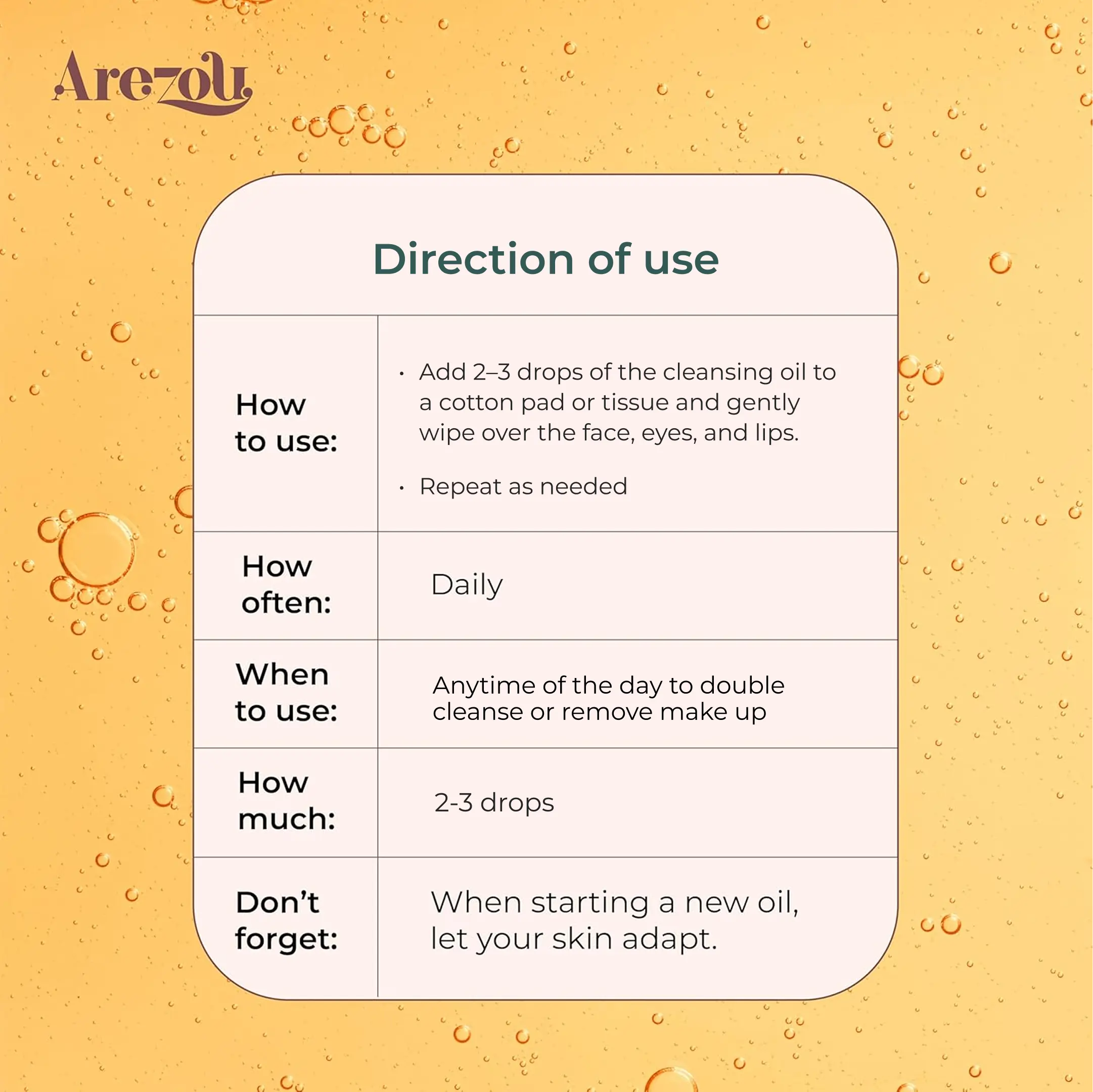 Add 2-3 drops of the cleansing oil to a cotton pad or tissue and gently wipe over the face, eyes, and lips.