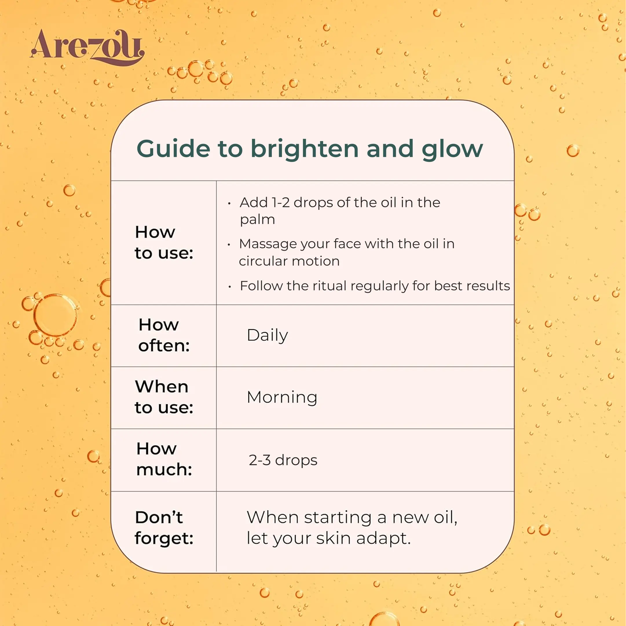 Brings back your skin’s fresh, healthy glow by energizing dull areas and restoring brightness from within.